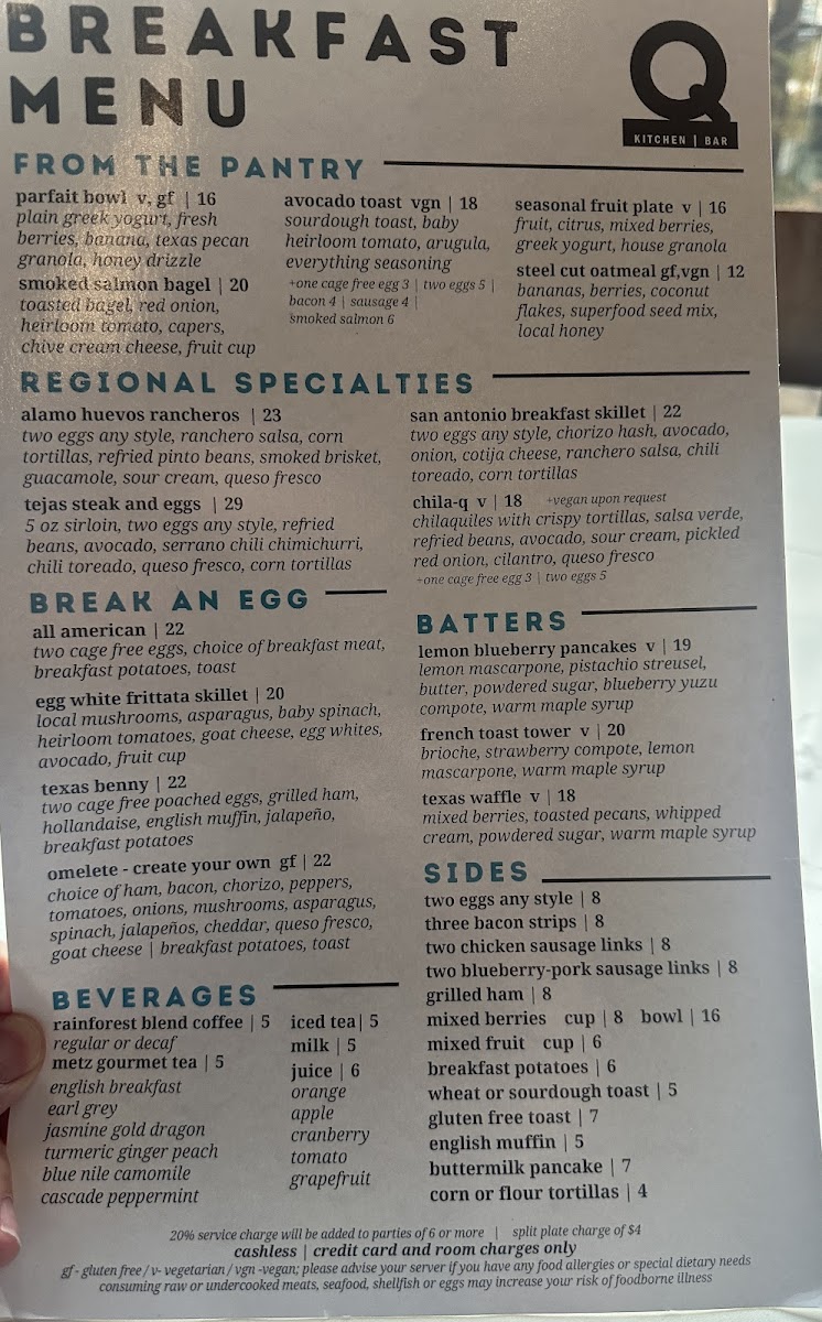 choice of ham, bacon, chorizo, peppers, tomatoes, onions, mushrooms, asparagus, spinach, jalapenos, cheddar, pepper-jack, goat cheese | griddled breakfast potatoes